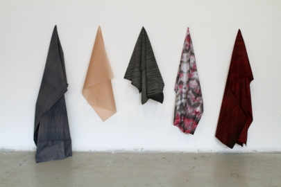 D'ailleurs le fait d'utiliser des matériaux présentés presque sans mise en forme est une constante dans le travail de Julie Darribère Saintonge. C'est le cas notamment de Mettre dans la voix des parenthèses (2012) que l'on peut presque considérer comme un passage en revue de morceaux de bois, de tissus et de papiers de toutes sortes. Réunis le long d'un mur, ils semblent en attente d'une action qui leur donnerait une finalité. Ils semblent presque attendre un ordre ou un top. Là encore le geste est convoqué sans que sa présence ou son action ne soient explicitement manifestes. Car c'est cet état de latence qui caractérise le travail de Julie Darribère Saintonge où l'activité est convoquée comme une mise en mouvement bien plus que comme une finalité.