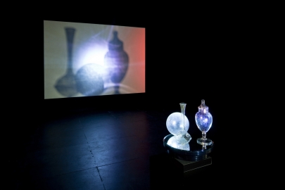 Objets en verre, plateau tournant, vidéo monocanal, son