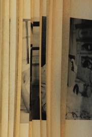 Dans ses photographies de livres ouverts (Naked Eye), Erica Baum installe des paysages composés de personnages qui semblent glisser entre des lignes - lignes composées des textes de l’ouvrage et des tranches des feuilles. Un relief fait ainsi son apparition, paradoxalement créé par l’aplatissement de l’image photographique.