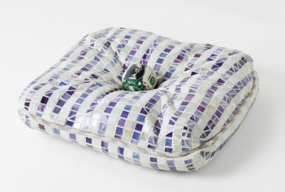 Oreiller trouvé, aqua-résine, fibre de verre, tuiles, colle, enduit