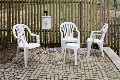 boîte aux elttres, chaîne (8 mètres),trois chaises de jardin et un tabouret en plastique
