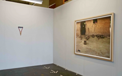 Des processus similaires ont été mis en œuvre pour « Morning Setting » où les habitations semblent être le décor d’un théâtre d’objets livrés à eux-mêmes, empreintes d’une activité qui se serait absentée. La précision de la captation dans l’art de Marie Bovo dévoile une myriade de détails et une infinité de variations colorées. Çà et là un numéro de téléphone inscrit à même le sobre torchis, une chaussure esseulée, une balayette oubliée, des bassines aux couleurs éclatantes composent l’énigme d’un rituel qui s’avère être l’espace du déjeuner ou du diner.