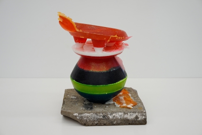 glycérine, paillettes, plombs de pêche, polystyrène, pierre lithographique