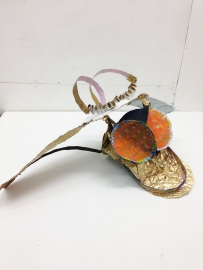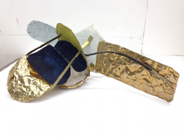 plaque de laiton, fil, câble, peinture, 57 x 40 x 23 cm