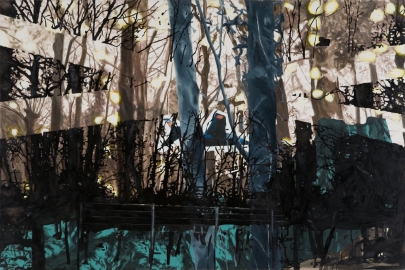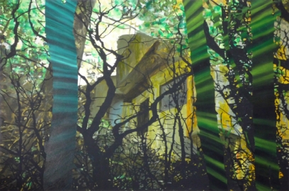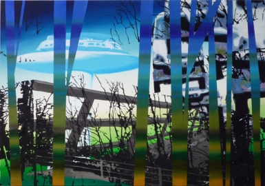 Puisque l’image naît toujours d’un écart au visible, l’artiste surjoue en creux les procédés de supercheries propres à l’acte de représentation : sous l’illusoire vraisemblance donc, l’analogie est tronquée : compositions truquées, espaces en déséquilibre, enveloppes infidèles, points de vue chimériques. Ce qui se trame sous la facture nous fait face : une "image en voie de visibilité, où une déchirure se fait jour"1 . Nicolas Pincemin décline ainsi un vocabulaire de points de tensions, d’accrocs dans l’image qui la font échapper au devenir pauvre : zones focus, copiés collés fondus, coulées affirmées, calques négatifs, projections saturées, maquillages virtuels et repentirs… Autant d’échappées aveuglantes, d’obstructions exutoires, d’ "efficacités sombres" qui viennent "creuser le visible (…) et meurtrir le lisible"2[….]